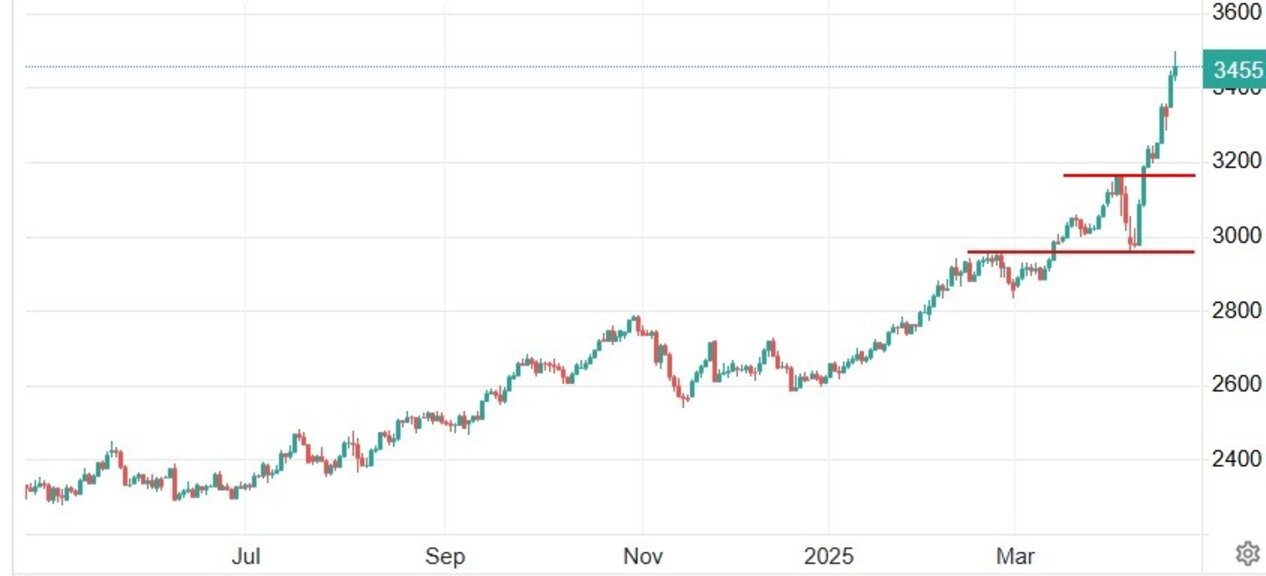 Цената на златото достигна ново рекордно високо ниво, достигайки границата от 3500 долара за тройунция, предаде Ройтерс.
