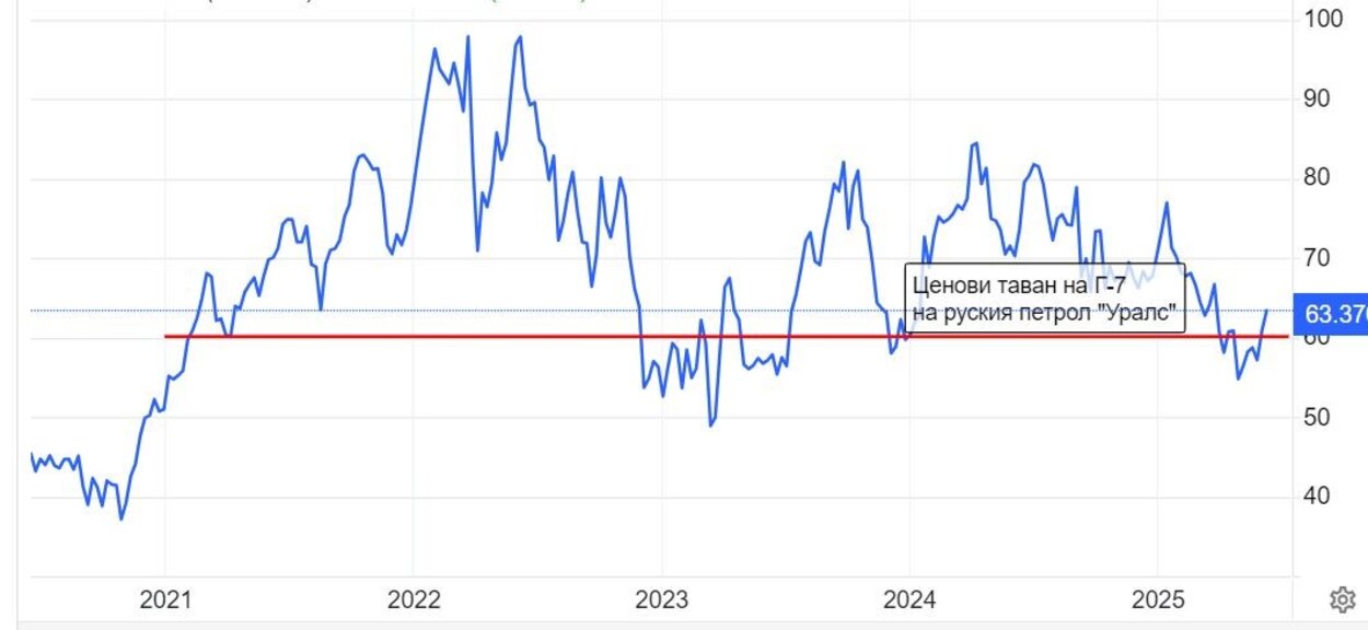 Лидерите на страните от Г-7 ще се срещнат на 15-17 юни в Канада, където ще обсъдят първоначално договорения таван на цените от края на 2022 г. Таванът е създаден, за да позволи продажбата на руски петрол "Уралс" на трети страни, използващи западни застрахователни услуги, при условие че цената не е повече от 60 долара за барел, напомня агенцията.
