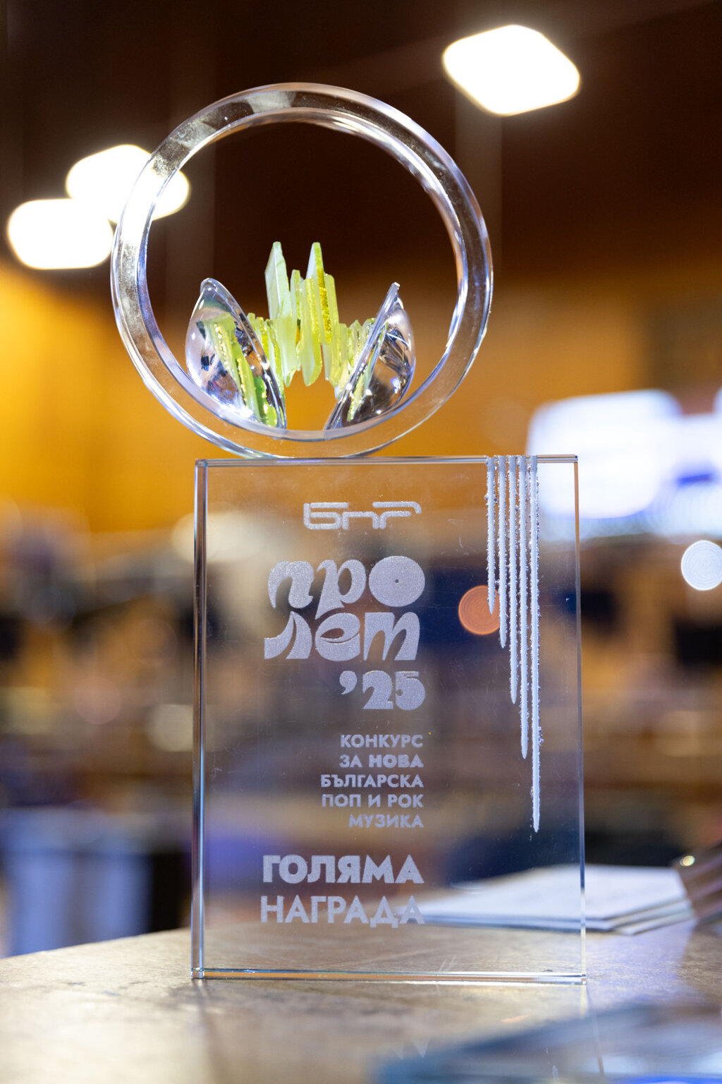 - Голямата награда на конкурса "Пролет" в категория "Нова българска поп и рок музика" дава възможност на изпълнителя/групата да реализира запис на нова авторска музика. БНР финансира и продуцира звукозаписни дейности и постпродукция във Второ студио на БНР и с технически екип на БНР на стойност до 12 000 лева, съгласно действащите към момента на записа тарифи на БНР.