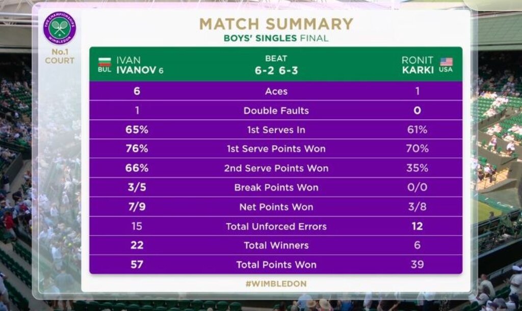 България отново има тенис шампион в турнирите от Големия шлем при юношите и девойките след 2008 година. Това е Иван Иванов, който триумфира на Уимбълдън без да загуби нито сет.