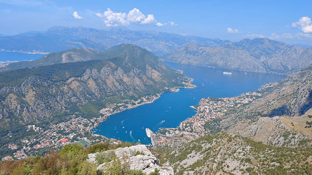 Цялата тази транспортна неразбория се изтри от съзнанието ни за миг, щом погледнахме от най-високото място. Искрящо зелени планини, свирепи скалисти зъбери и … три морета. Защото заливите всъщност са три с тъмно смарагдови води, разнообразени от белотата на круизните лайнери или порестите дъги, оставяни от яхтите. Няма перо, достойно да опише такава красота. А на панорамната тераса се оказахме в компанията на германски студенти дошли до тук с електрически тротинетки, току що кацнали на близкото летище в Тиват израелски младежи, любознателни възрастни японци и запъхтени от пешеходното изкачване датчани. Всички побратимени от неземната гледка.