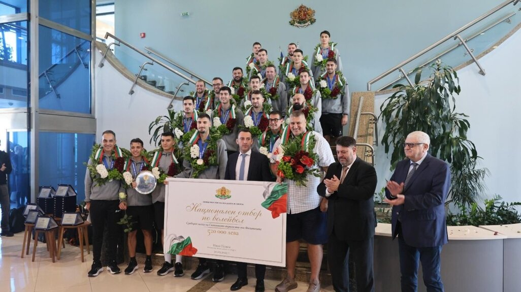 Всички от отбора бяха увенчани с лаврови венци и получиха чек от министър Пешев за 520 хиляди лева.