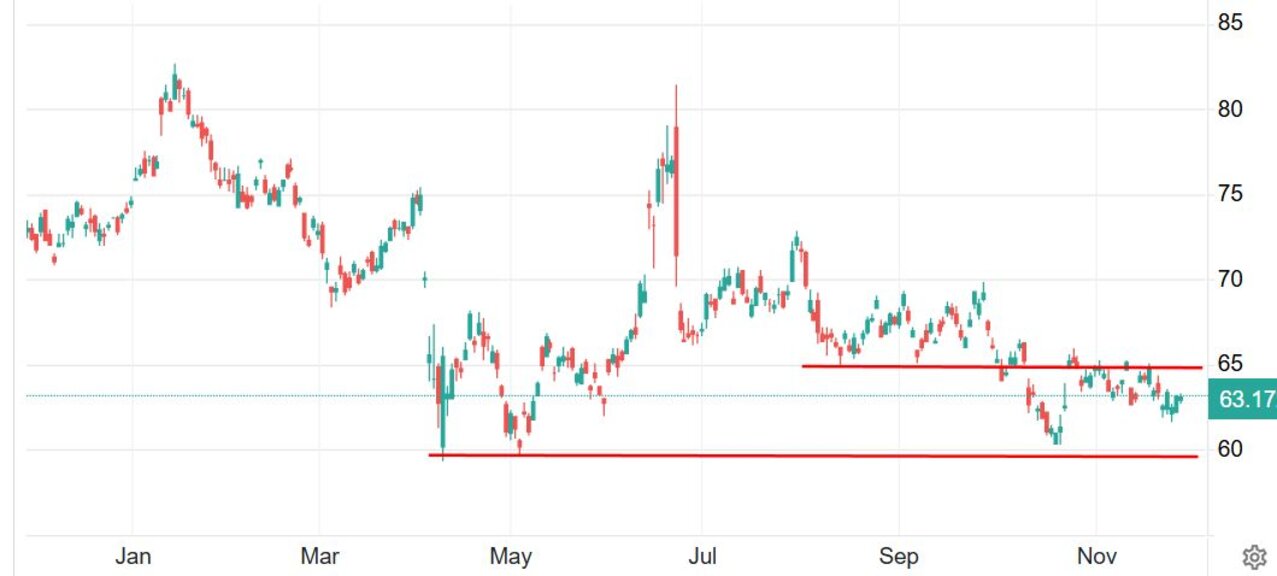 Към 17.15 часа българско време фючърсите на петрол Брент се търгува около 63,15 долара за барел, а тези на американския лек суров петрол към 58,90 долара за барел, след като в началото на седмицата паднаха към 5-седмични дъна, съответно около 61,61 и 57,10 долара за барел.