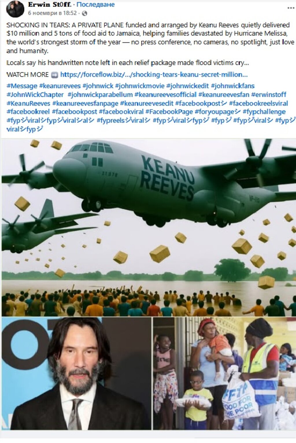 Твърдението за дарението в Ямайка, е споделено в хиляди публикации, но с имената на различни световноизвестни личности - Киану Рийвс, принц Уилям, Андреа Бочели, Том Джоунс, Илън Мъск, Тайгър Уудс, Луис Хамилтън и много други.