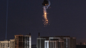 Руски дрон "Шахед" в небето над Киев, 7 септември 2025 година.