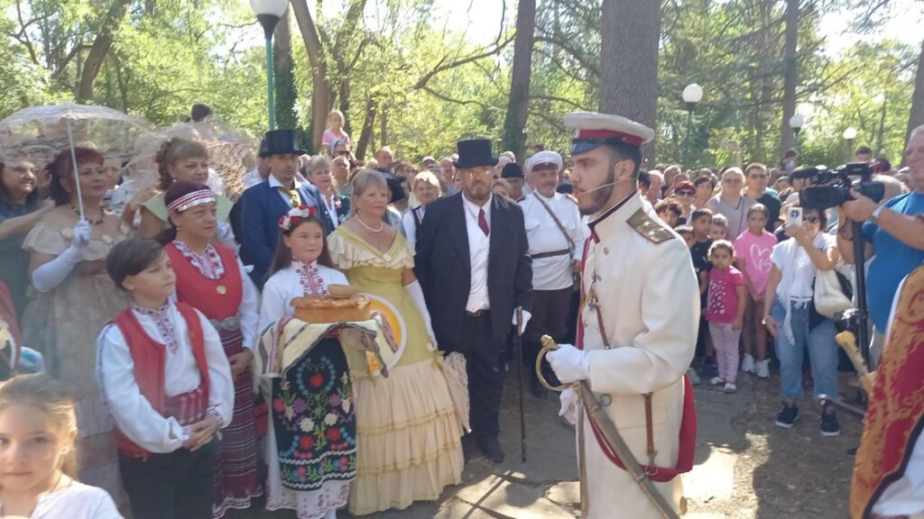 Церемонията по откриването на паметника включваше и възстановка на срещата между владетеля и пратениците Сава Муткуров и Димитър Ризов.