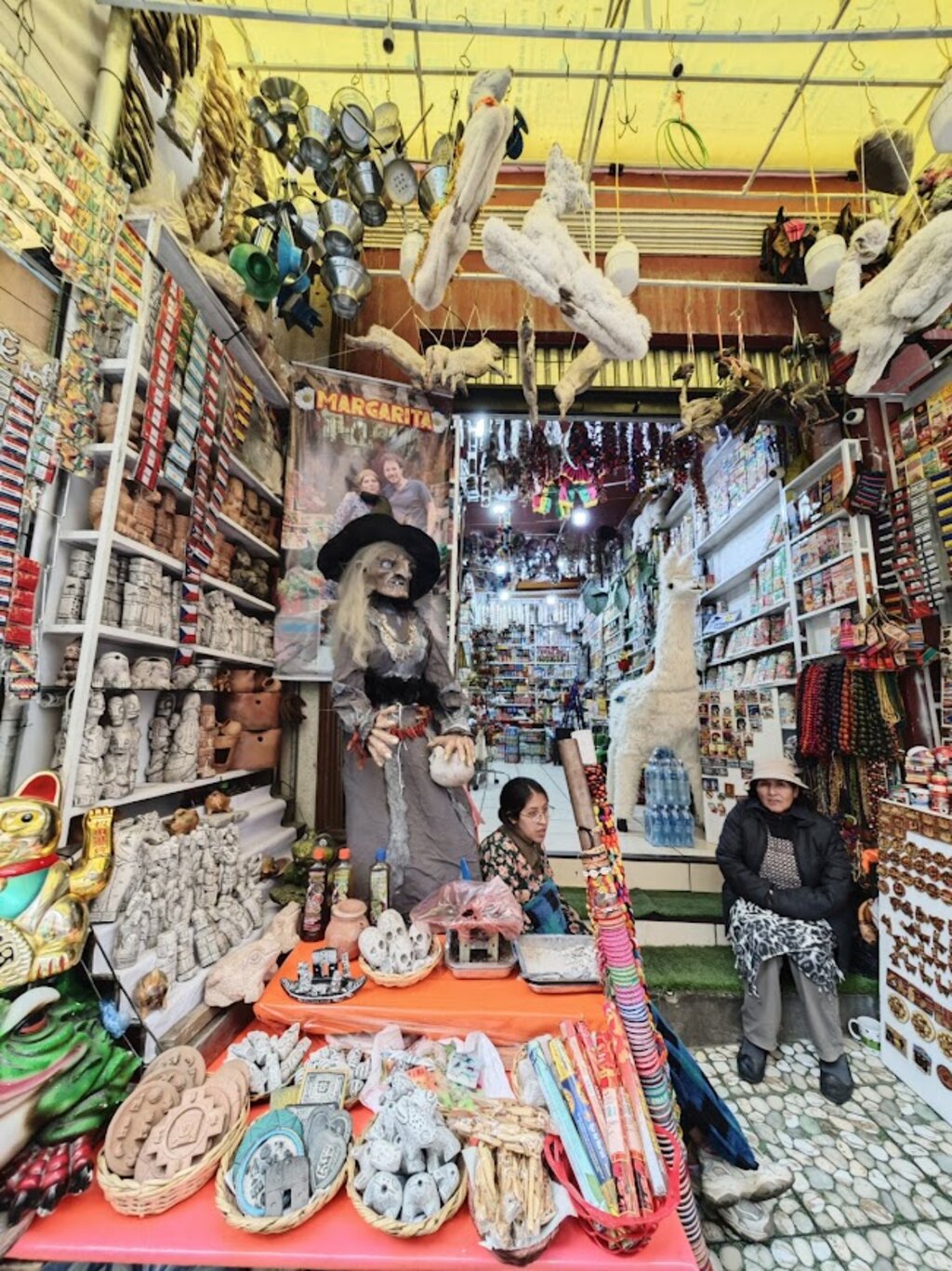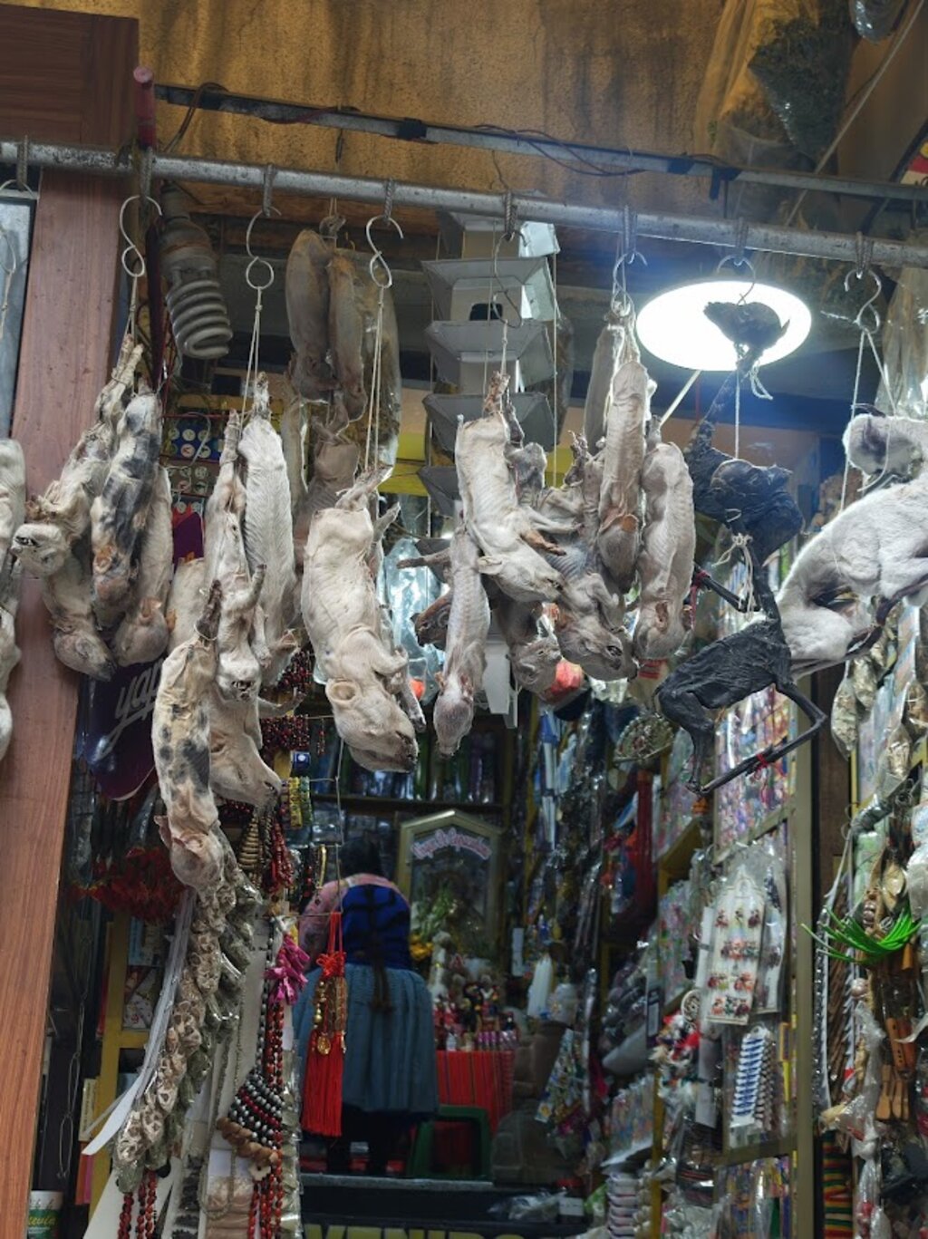 Наистина на пазара можете да се намери всичко, което една вещица би могла да пожелае. Много от тези чудотворни предмети се използват в религиозни ритуали, посветени на духовете на местните индианци. Боливийците са убедени, че специалните магии и някои чудодейни средства могат да осигурят абсолютно всичко: здраве, любов, интелигентност, щастие, богатство и дълголетие. Най-продаваните бобови растения са тези от Бразилия Ятирите – гадатели, магьосници и лечители, срещу определена цена правят заклинания срещу врагове, нежелани роднини и обещават дори да подобрят оценките на детето в училище.