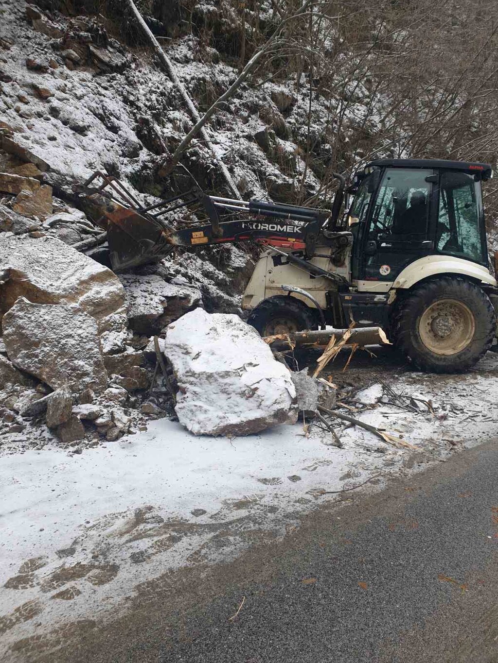 7 машини разчистваха днес падналата скална маса на път III-866 Стойките - Широка лъка. Движението частично е възстановено.
