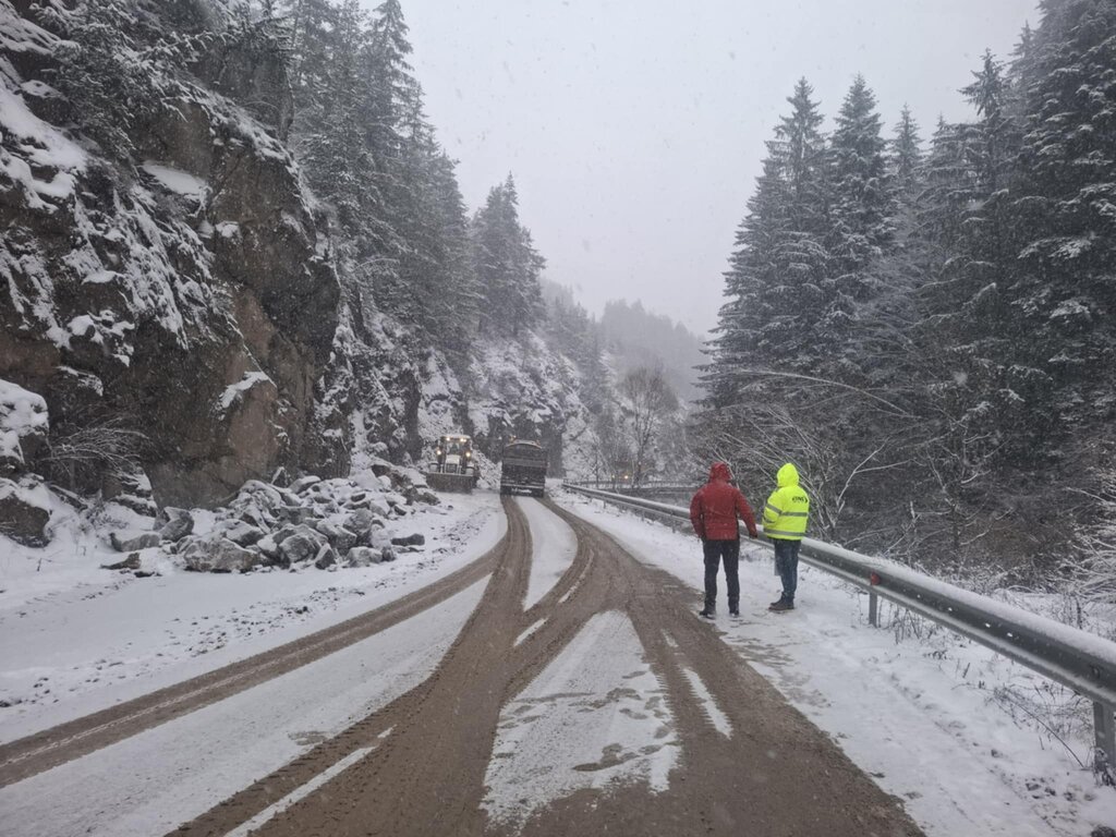 Пътищата са почистени и обработени, но на места има заснежени и заледени участъци.