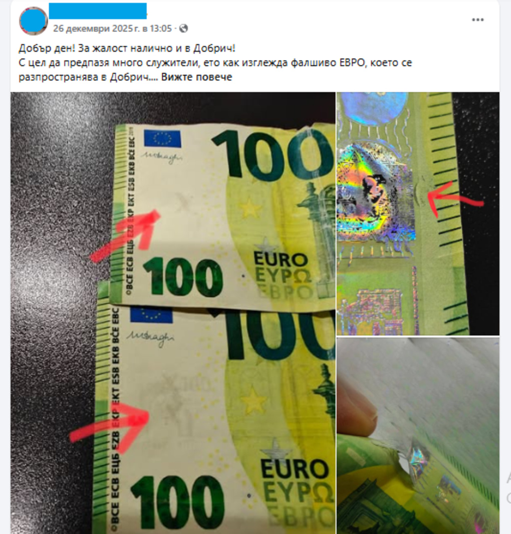 Според експерти е твърде скъпо да се фалшифицират евромонети за разлика от евробанкноти, заради което и те отправят апел за повишена бдителност към всички - особено към банкноти от 50 евро и 100 евро, както и съветват да ги оглеждаме внимателно и от двете страни при работа с тях.