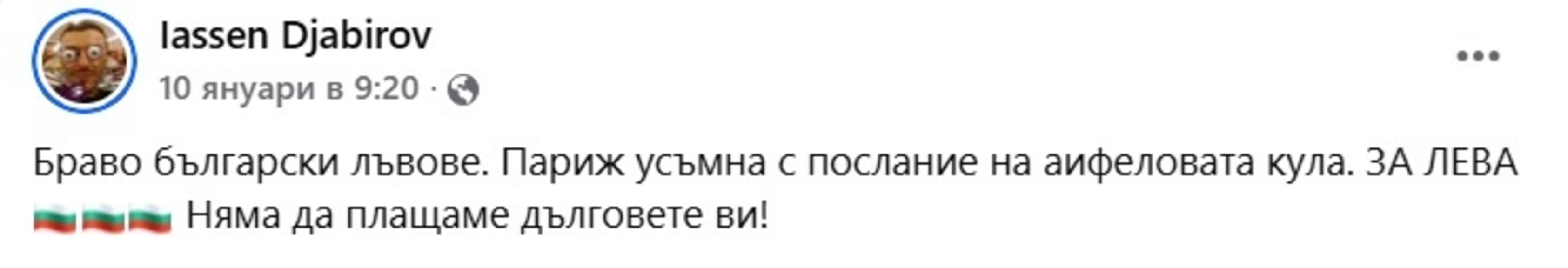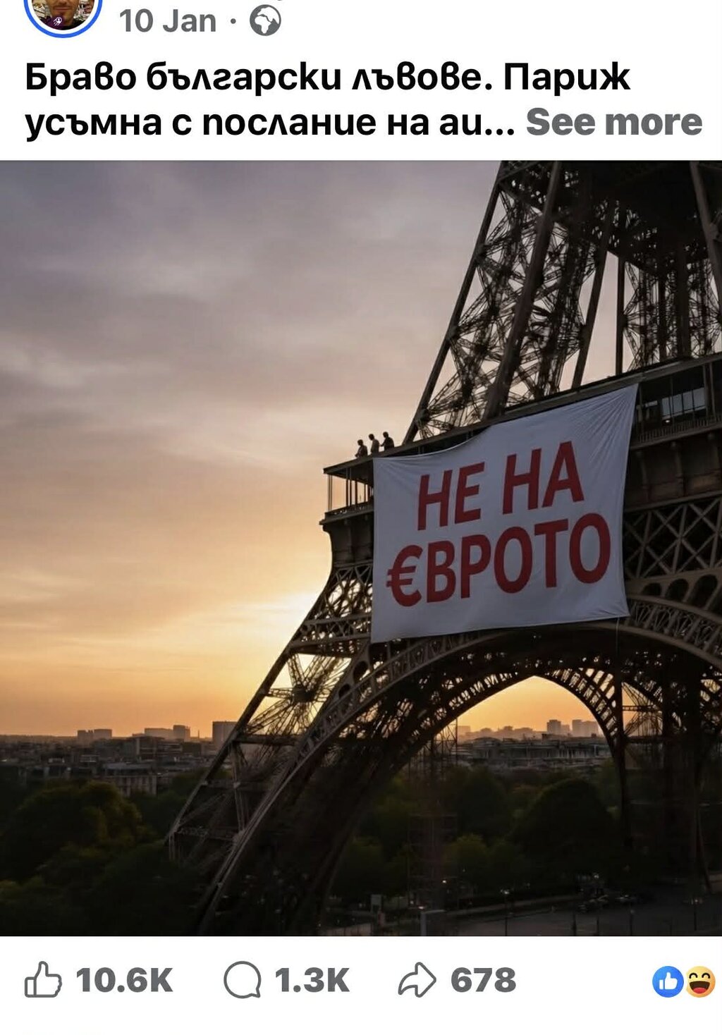 Въпреки това, голяма част от коментиралите и споделили публикацията му за осъмналата Айфелова кула с послание: "НЕ НА €ВРОТО“, са убедени в истинността й.