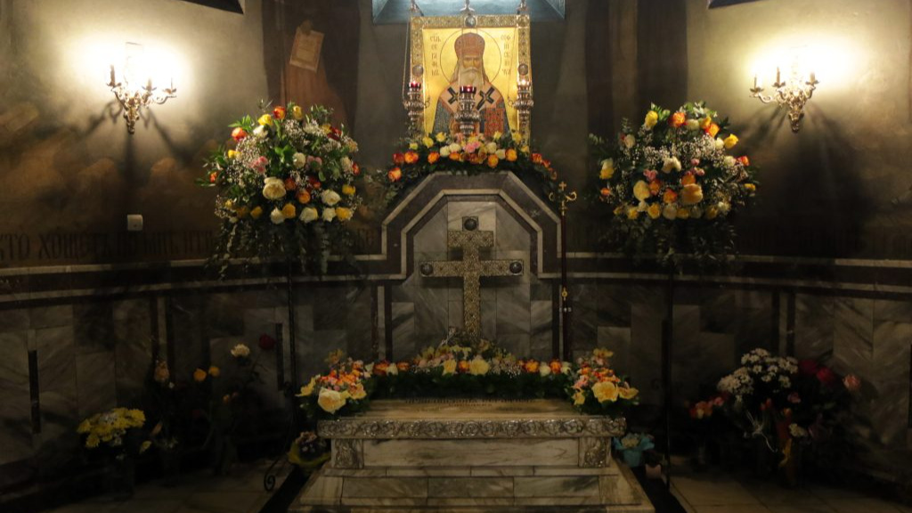 Погребан е в криптата под олтара на руския храм-подворие "Св.