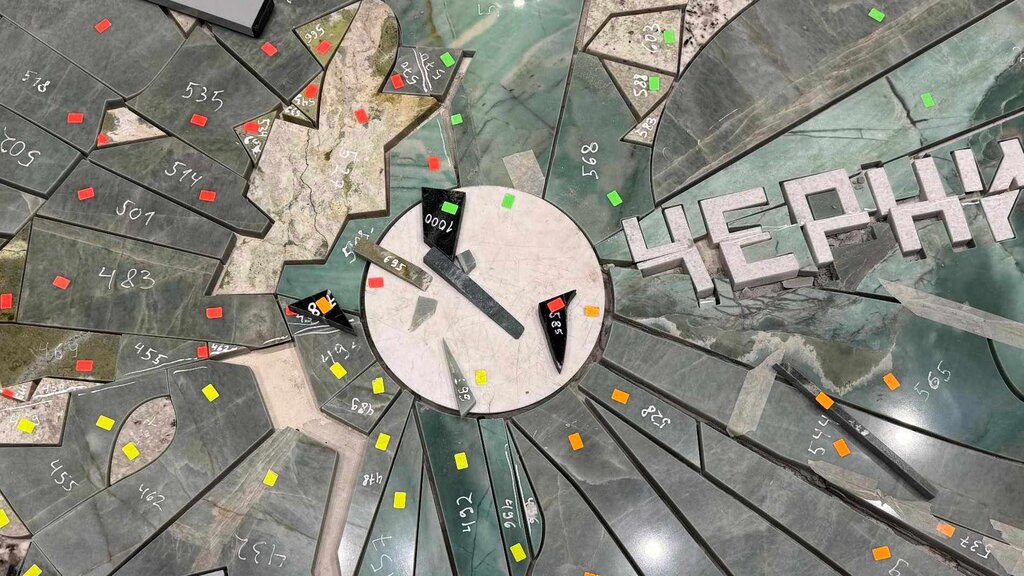 В търсене на възможност да реализира замисъла на проекта си, проф. Добрев прибягва до водното рязане (техника, която се използва в каменоделството, която дава възможност да изрежеш каквото си искаш и в какъвто си искаш формат в рамките на един дигитален файл, който се предоставя), обяснява той и допълва, че така получава над 1000 каменни парчета, които си пасват до 2 мм. и които заедно правят квадрат с размери 7.50 на 7.50 метра.