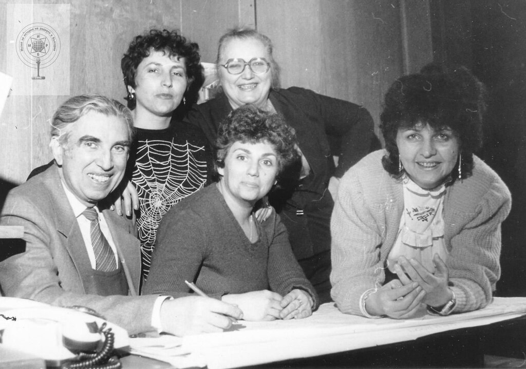 Димитринка Величкова заедно с Милка Коцева, Ангел Опълченов, Валя Бузовска и Стефка Тарашманова – сменни ръководители в канцеларията на Звукозаписа
