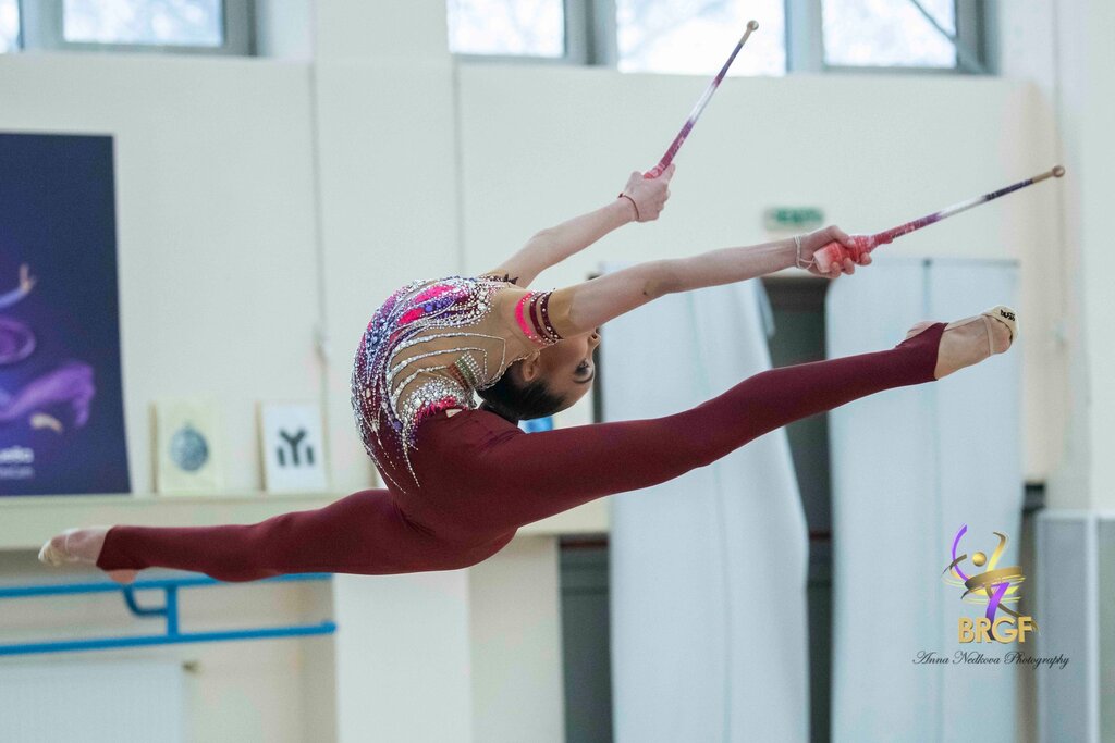 Александра Петрова записа силен международен дебют и завоюва сребърния медал в многобоя с 99.500 точки (25.950 обръч, 24.100 топка, 25.950 бухалки и 23.500 лента). Водената от Кристина Илиева грация показа стабилност и увереност на състезателния килим още в първото си участие на подобен форум.