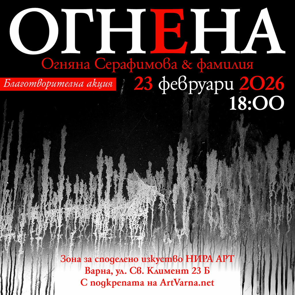 Организирана е благотворителна акция "Огнена: Огняна Серафимова и фамилия" – поп-ъп изложба в зоната за споделено изкуство "Нира Арт" във Варна, на улица "Свети Климент" 23Б (Гръцката махала). Събитието е днес от 18 часа.
