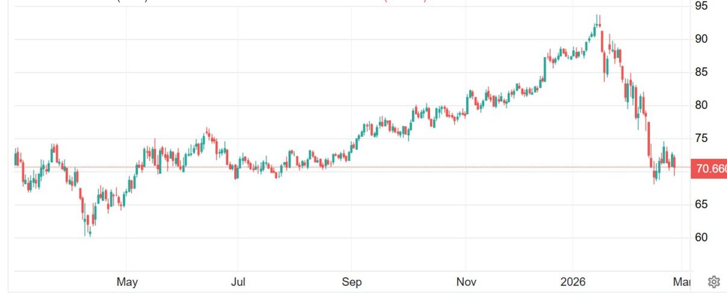 Цените на въглеродните емисии в ЕС поевтиняха през днешната обедна търговия с 4,5% към 69,25 евро за тон, преди да стабилизират около 70 евро за тон. Цените се сринаха с около 20% от началото на годината, като на 16-и февруари удариха дъно около 68,11 евро - най-ниско ниво от началото на май 2025 г., на фона на оказвания натиск от държавите членки на ЕС да защитят индустрията. Говорител на комисията заяви, че прегледът на схемата за търговия с емисии е в ход и че няма да се коментират позициите на страните членки по време на процеса.
