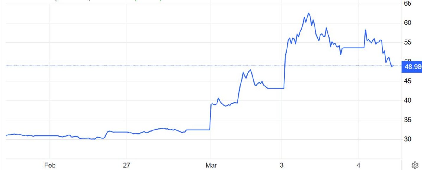 Цените на природния газ в Европа пък смениха още по-рязко посоката, като априлските фючърси на нидерландския газов хъб TTF вече поевтиняват в рамките на деня с над 10% към 47,15 евро за мегаватчас, след като по-рано в сряда поскъпнаха с 3% над 61 евро/MWh.