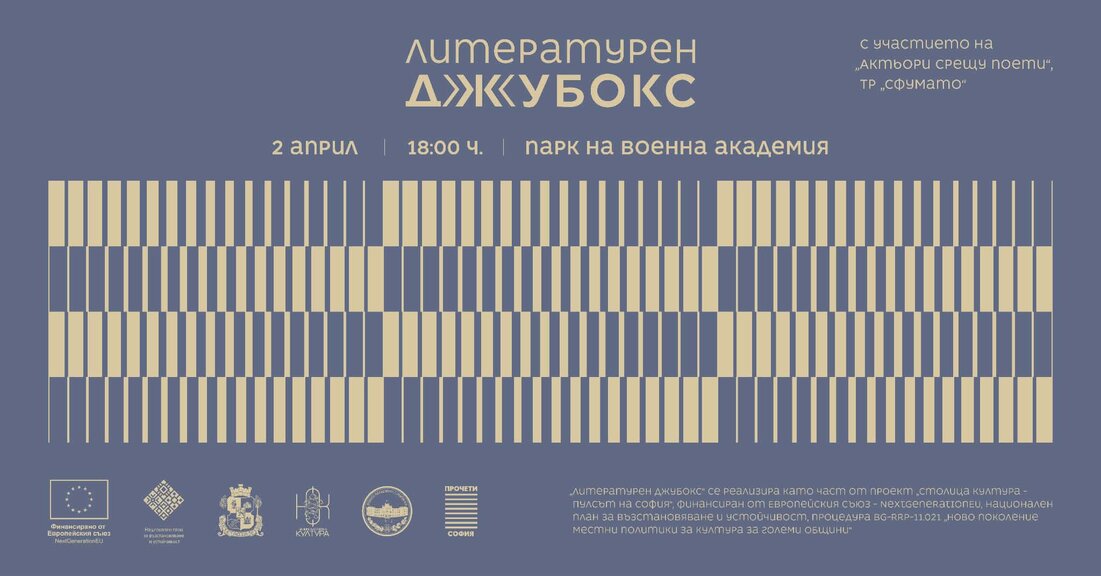 "Литературен джубокс" се финансира по проект "Столица Култура - Пулсът на София", финансиран от Европейския съюз - NextGenerationEU, Национален план за възстановяване и устойчивост.