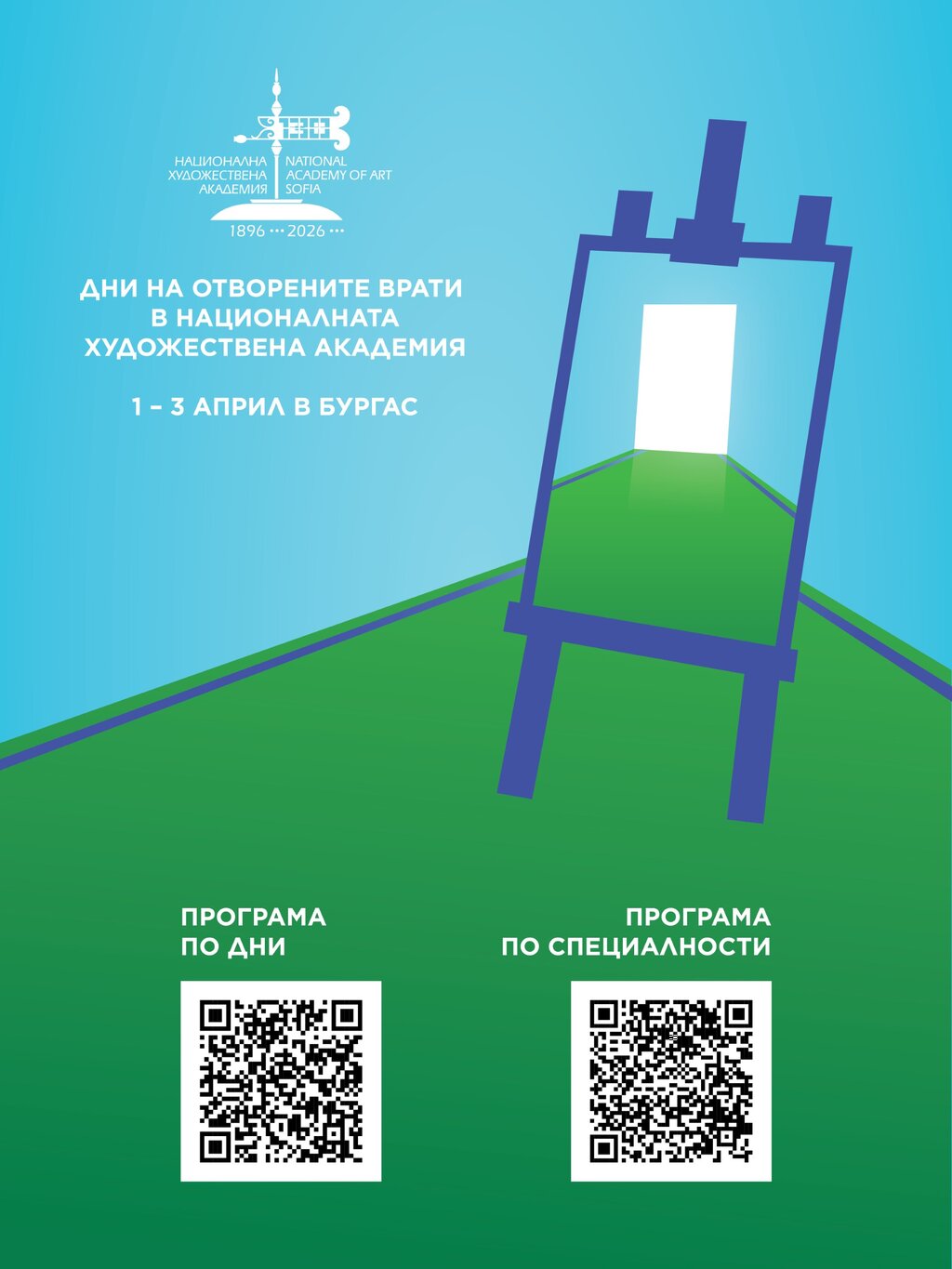 Дните на отворените врати в НХА – Филиал Бургас ще се проведат от 1 до 3 април 2026 г. Специалностите на Филиала на НХА са разположени на три адреса в град Бургас: