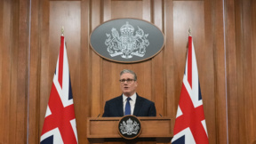 Британският премиер Киър Стармър даде на пресконференция, на която представи актуална информация за ситуацията в Близкия изток, на Даунинг стрийт в Лондон, Великобритания, 1 април 2026 г.