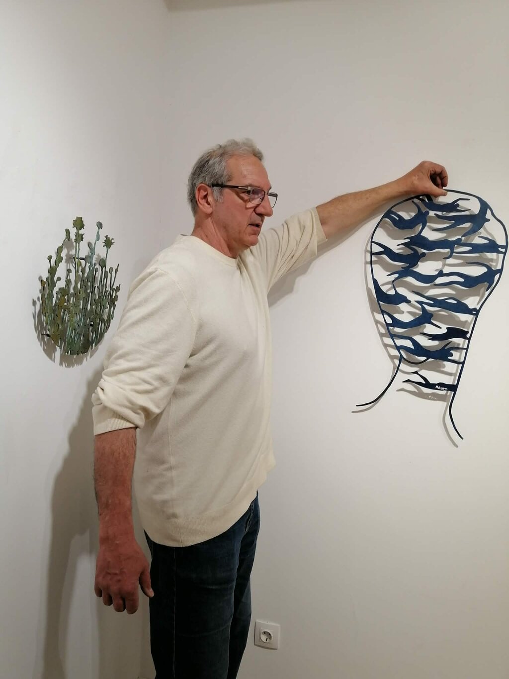 "Точно от 20 години развивам тая линия – металът изрязан с лазер. Първо започва рисунката, после се преработва дигитално, за да може машината да изреже и аз вече по-нататък продължавам нейното завършване", продължава Байтошев.