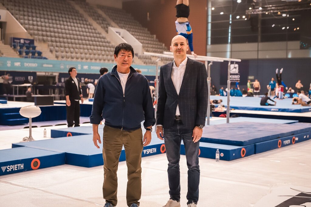Официален гост на Световната купа в Осиек е президентът на Световната гимнастика Моринари Ватанабе.