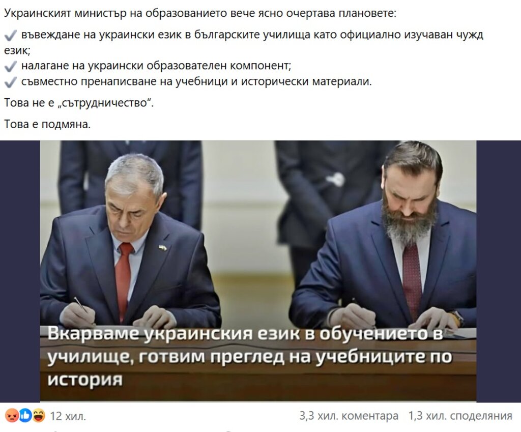 Публикацията, че в българските училища ще бъде въведено обучение по украински език беше споделена в десетки групи в социалните мрежи, достигнали хиляди споделяния.