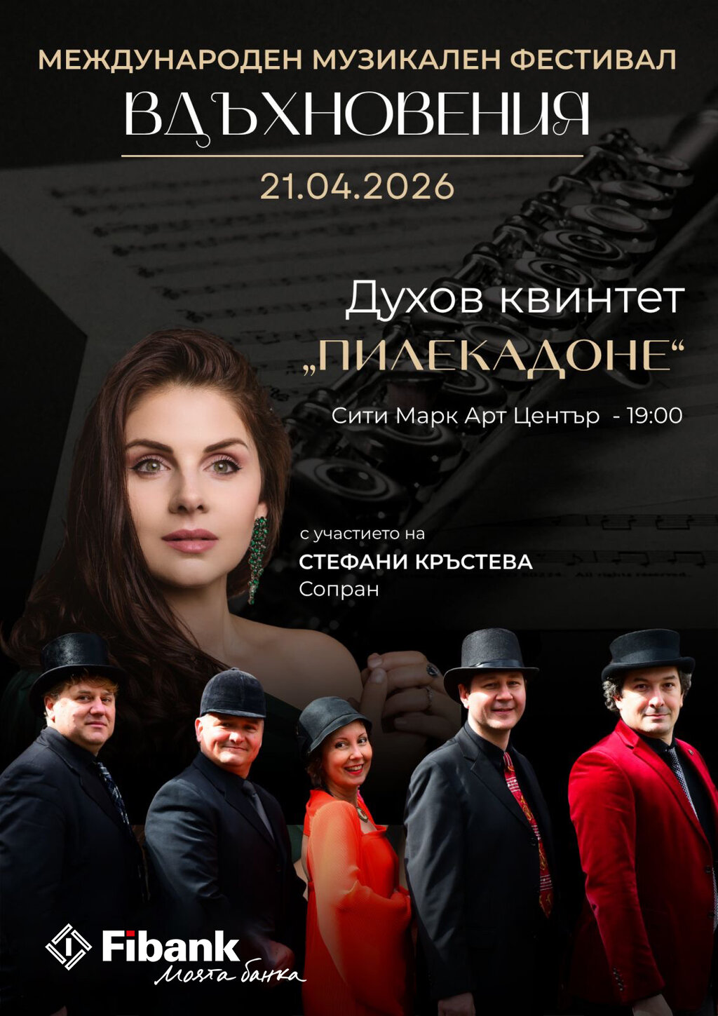 Началото на новия музикален форум в столицата ще бъде поставено с концерт на духовия квинтет "Пилекадоне" и певицата Стефани Кръстева на 21 април в Сити Марк арт център от 19:00 часа. След това изяви ще имат пианистката Гюлсин Онай от Турция, студенти на проф. Борислава Танева, дуото Зорница Иларионова - цигулка и Лео де Мария - пиано, както и изпълнители от най-младото поколение - пианистите Николай Маринов и Димитър Михайлов, валдхорнистът Виктор Теодосиев.