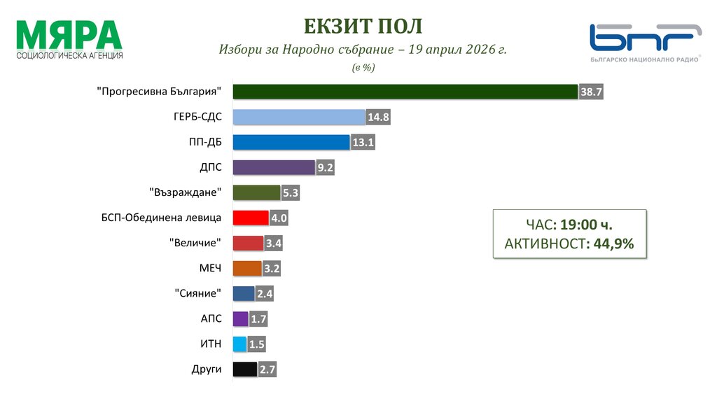 Eкзитпол на "Мяра": "Прогресивна България" е №1, оспорвано второ място