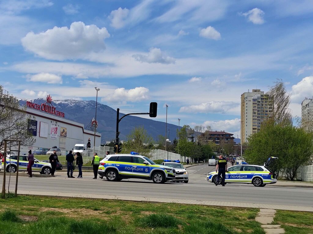 Движението към Околовръстното шосе е спряно. На мястото има и линейка със спешен екип.