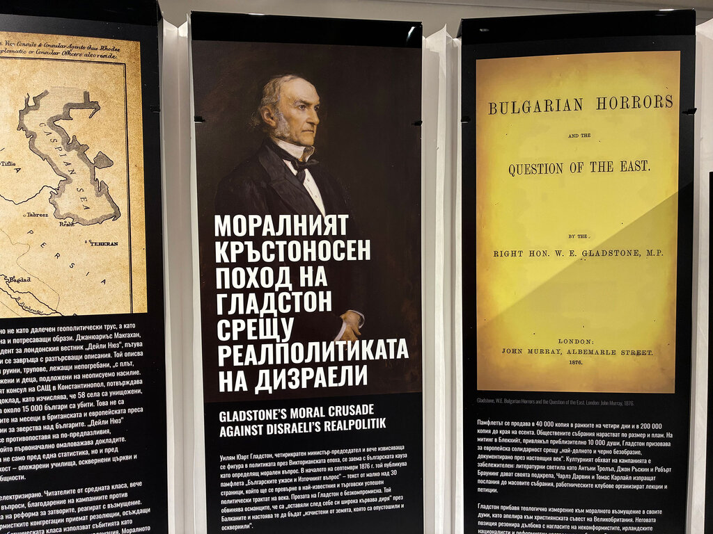 Изложбата проследява как силата на словото променя политическия дневен ред на Европа. Централно място в изложбата заема памфлета "Българските ужаси и Източният въпрос", който Уилям Гладстон публикува през септември 1876 г. и последвалите реакции в британската преса.