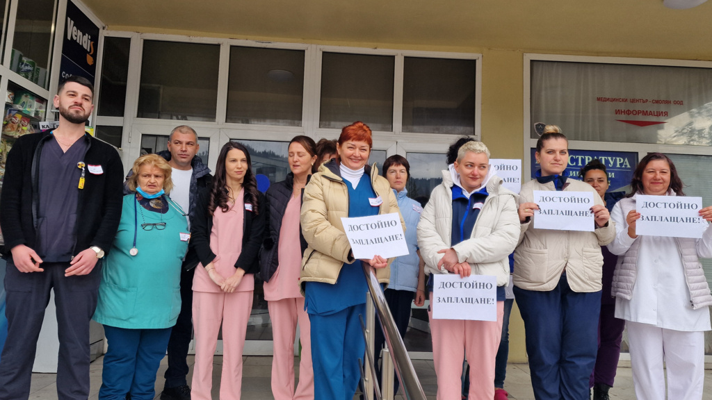 В Смолян протестират всички сестри от Многопрофилната болница "Д-р Братан Шукеров", но само част от тях излязоха пред лечебното заведение, тъй като останалите са при пациентите заради намален състав.