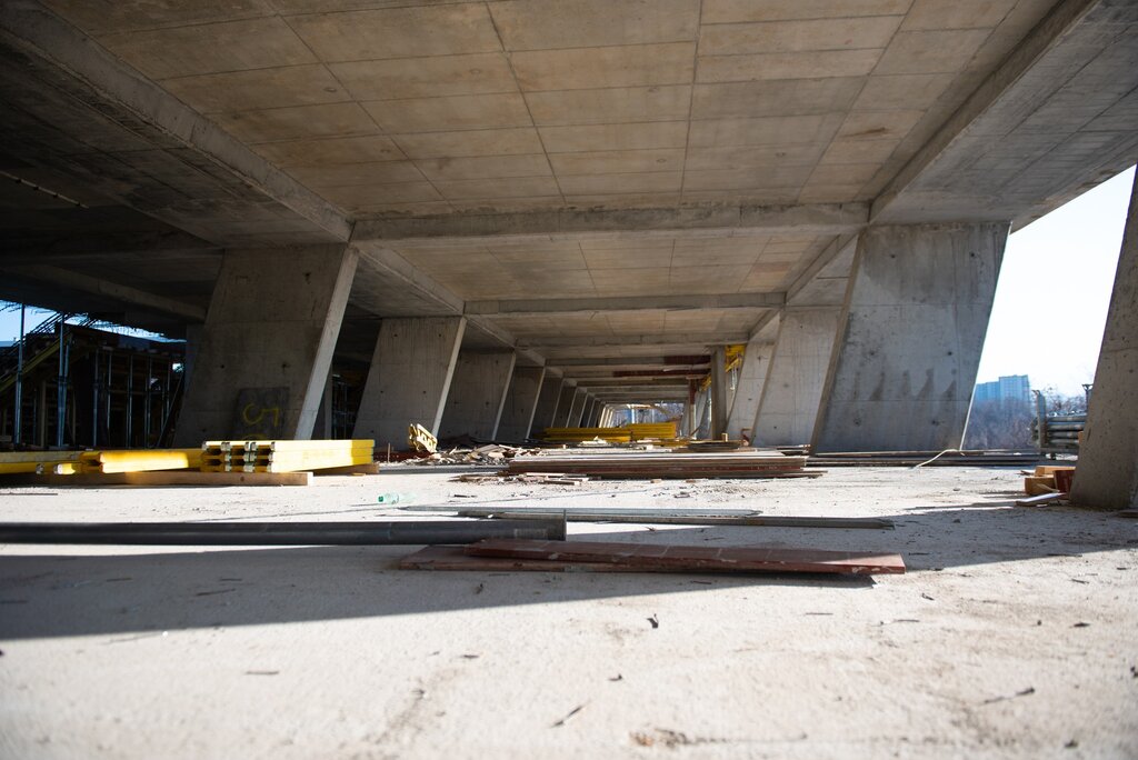 Вече е излята четвъртата бетонна плоча, като при благоприятни метеорологични условия до края на месеца предстои полагането и на последната. Централната трибуна ще разполага с редица функционални пространства, сред които зали за медиите, телевизионни студиа и обслужващи помещения.