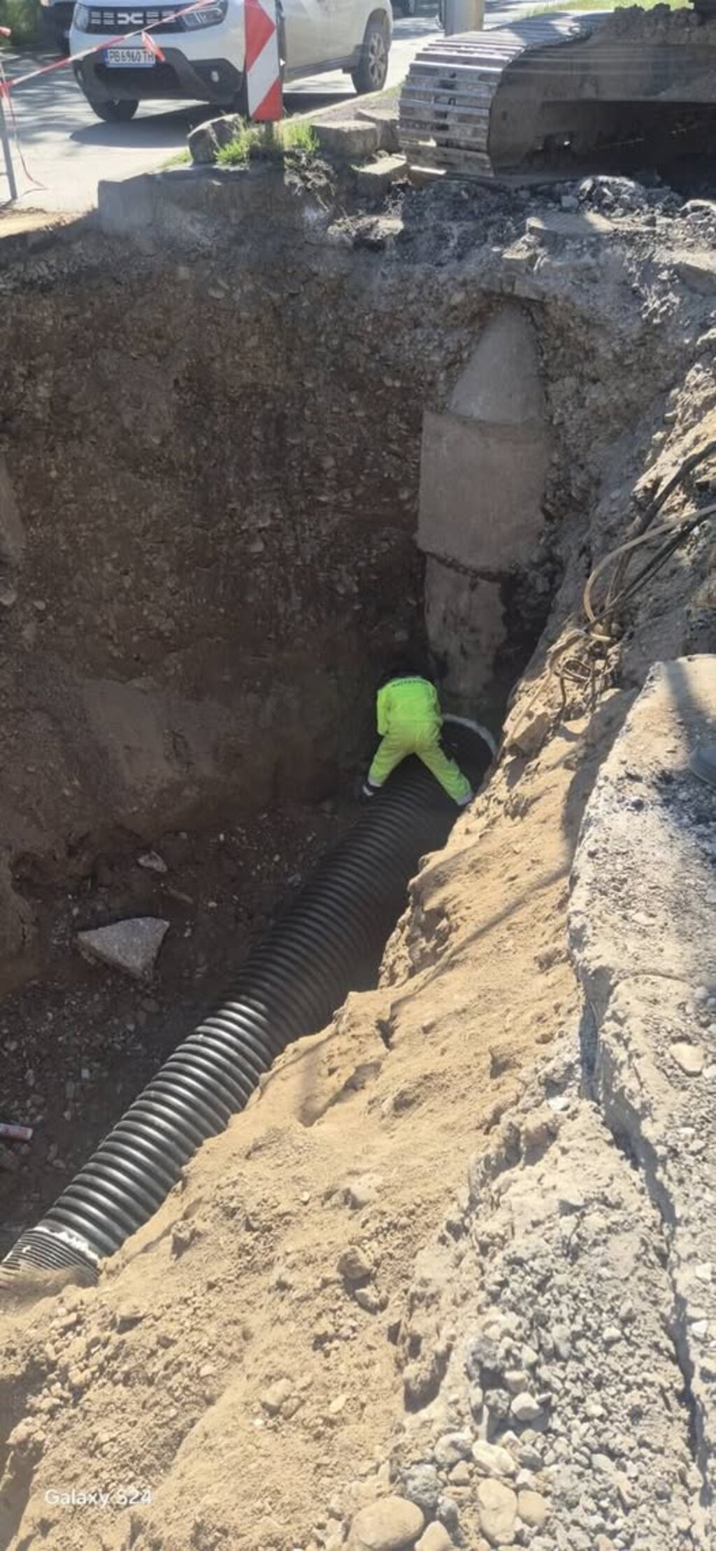 Чемишев обясни, че се е наложило тази нощ екипите на изпълнителя „Интерхолд“ да работят до 2:00 часа през нощта, тъй като е имало проблеми с пресичането на етернитовия водопровод Фи 500, който минава по трасето.