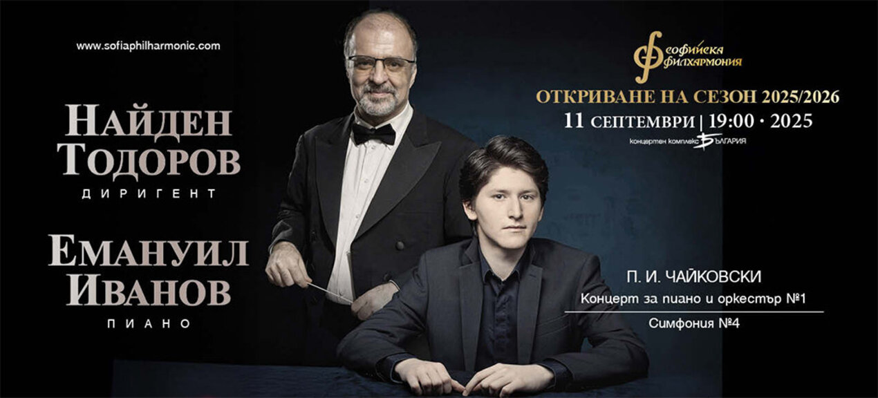 На 11 септември Националният филхармоничен оркестър и неговият главен диригент откриват сезон 2025/2026 с два абсолютни класически хита: Концерт за пиано и оркестър №1 и Симфония №4 на Пьотр Илич Чайковски – един от най-обичаните класици на всички времена.