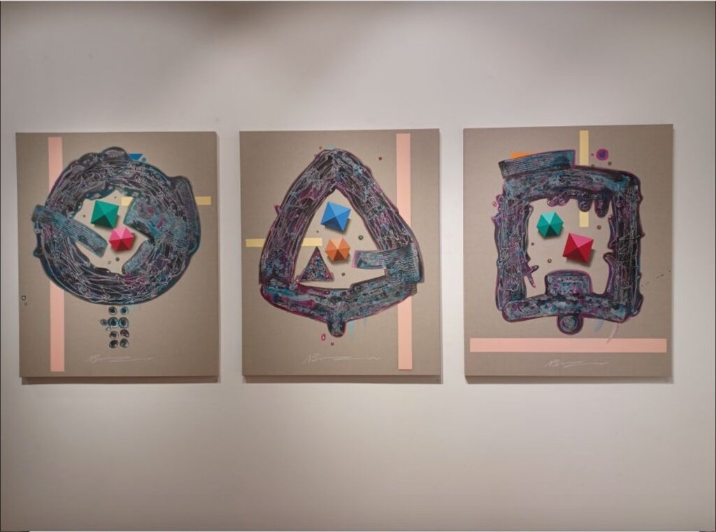 В новата си изложба Николай Бузов следва принципите на калиграфското изкуство, поднасяйки съзвучие от абстрактни символи и знаци. Живописните платна излъчват лекота и свобода, с които художникът създава своите геометрични структури.