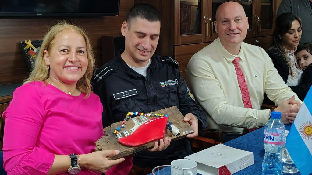"Вълнуващо е отново да се срещнем с екипажа. Специално за тях облякохме народните си носии. Благодарни сме на посланика на България в Аржентина Стоян Михайлов, на командир Радко Муевски, както и на всички от кораба за гостоприемството и сърдечния прием. Надяваме се да имаме и нови срещи занапред", каза Маркофф.