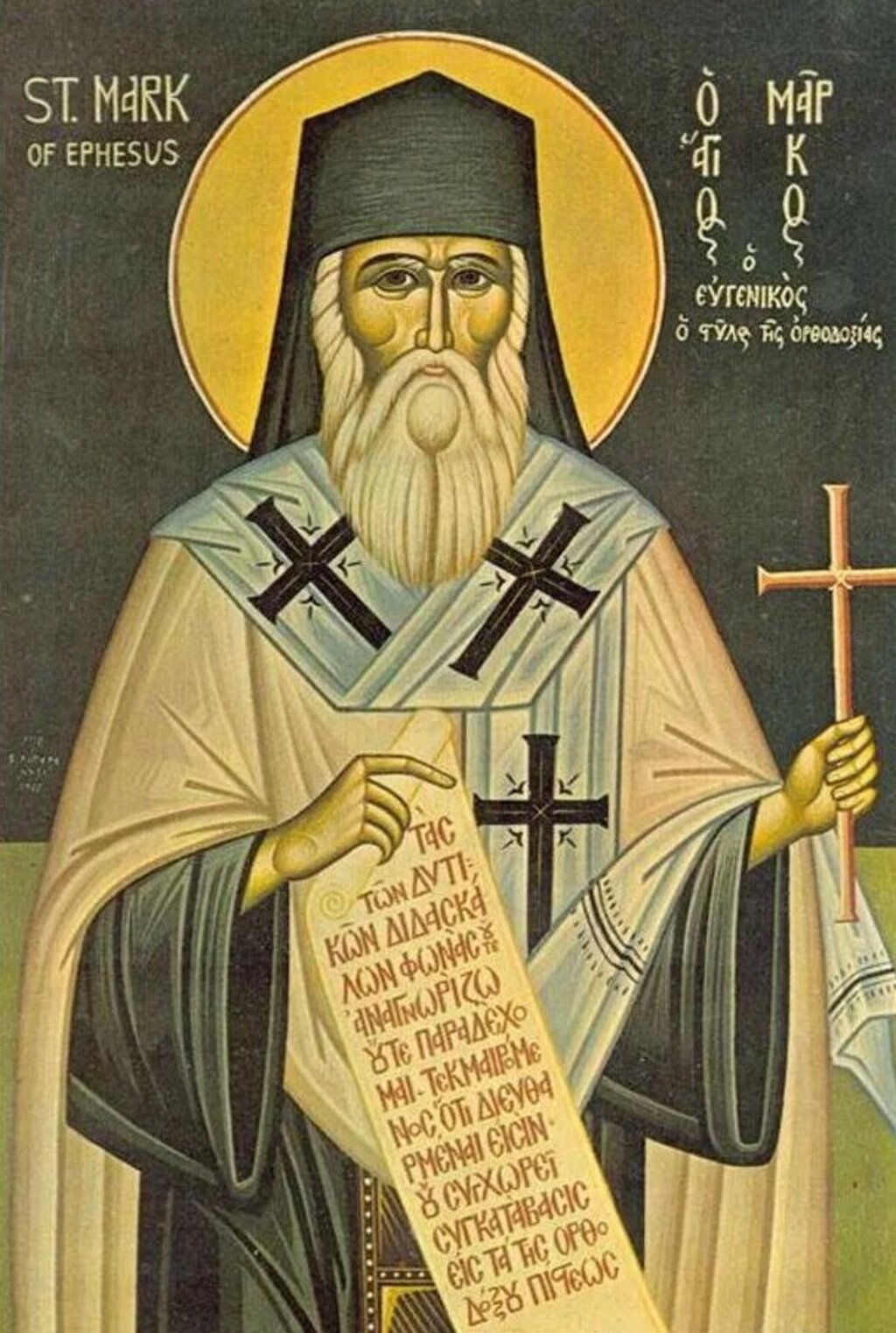 Св. Марк Ефески е клирик на Константинополската патриаршия, митрополит на Ефес. Участва във Фераро-Флорентинския събор през 1438 – 1439 г. и единствен от източните епископи не приема флорентинската уния с папа Евгений IV. Така, чрез него Бог спасил нашата свята, апостолска, православна вяра от отстъпление.