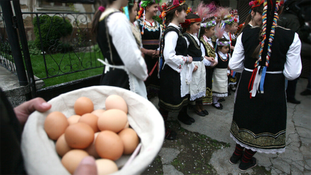 Домакините даряват момичетата с бели яйца и пари. Парите те ще си разделят по-късно, а яйцата ще боядисат за Великден.