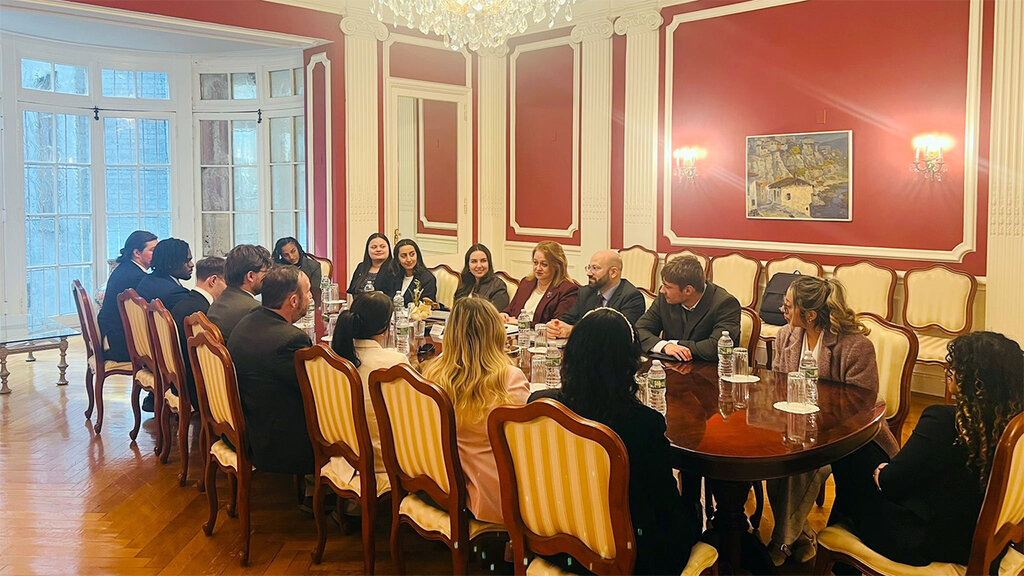 Посланик Гергана Караджова запозна гостите в Постоянното представителство на България в Ню Йорк с приоритетите на България в ООН и отговори на редица въпроси, поставени от студентите, отнасящи се до външната политика на България.