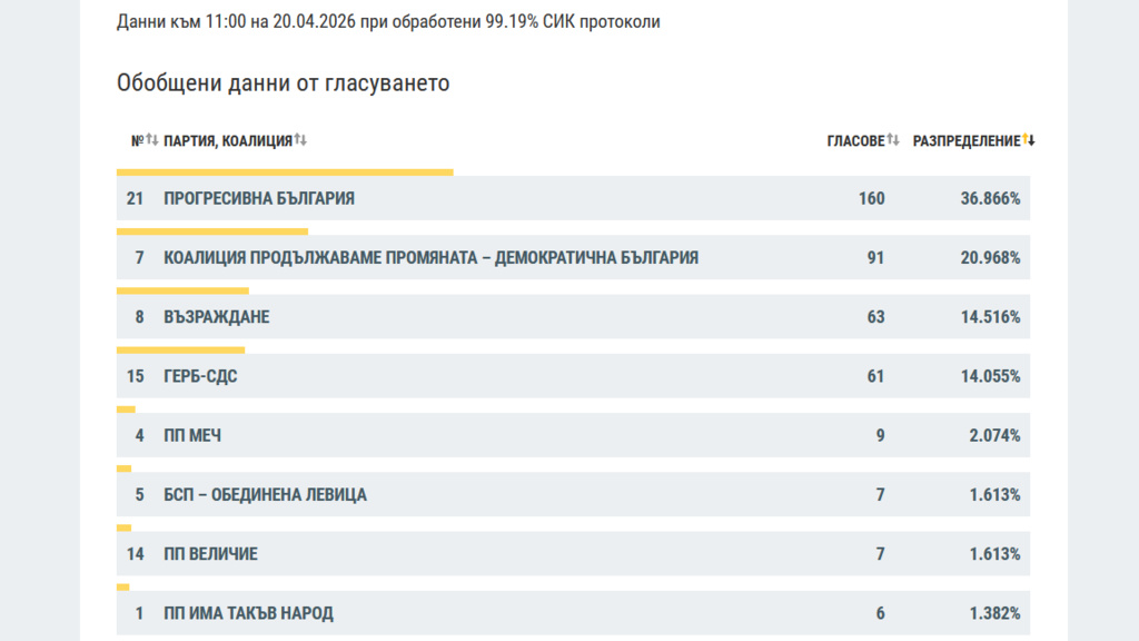 За ПП-ДБ в Сърбия са гласували 45,26 % от отишлите до урните. Втори са "Прогресивна България" с 23,16% и трети - АПС с 8,64%.