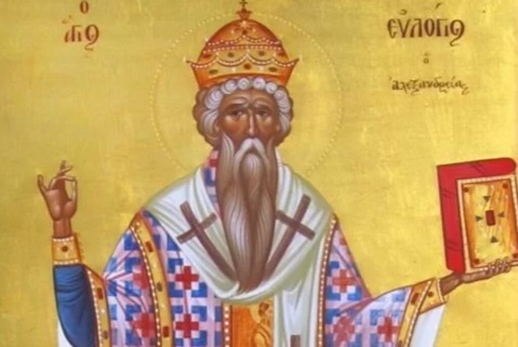 Св. Евлогий, Архиепископ Александрийски бил благочестив, предан на Христовата вяра, светител. Светителствал по времето на император Ираклий (VII век), преди св. Йоан Милостиви. Свети Евлогий бил отначало игумен на Богородичната Юстинианова обител в Антиохия. Император Тиберий го избрал за предстоятел на Александрийската катедра. Тук светителят с неуморна ревност се борел против еретиците и разпращал съчиненията си по египетските манастири, в които силно се разпространила монофизитската ерес на цариградския монах Евтихий.