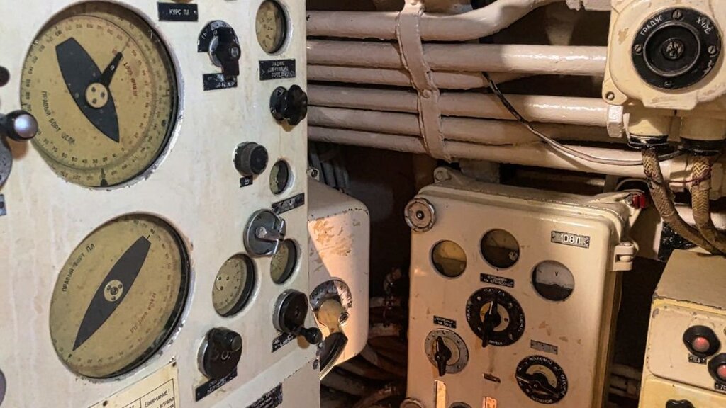 Туристите разглеждат шифровачния отдел и 34-те бутилки със сгъстен въздух. Интерес предизвиква кухнята, където се приготвяли по 180 ястия на денонощие, както и двата санитарни възли – тесни, но жизненоважни за 60-членния екипаж."