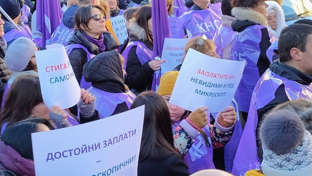 Акцията е част от протеста на синдиката КНСБ пред парламента под наслов "Искаме видимо увеличение на заплатите с Бюджет 2025". Основното искане е да се осигурят допълнителни 250 млн. лв. за заплати в бюджета, който се разглежда на второ четене в пленарна зала.