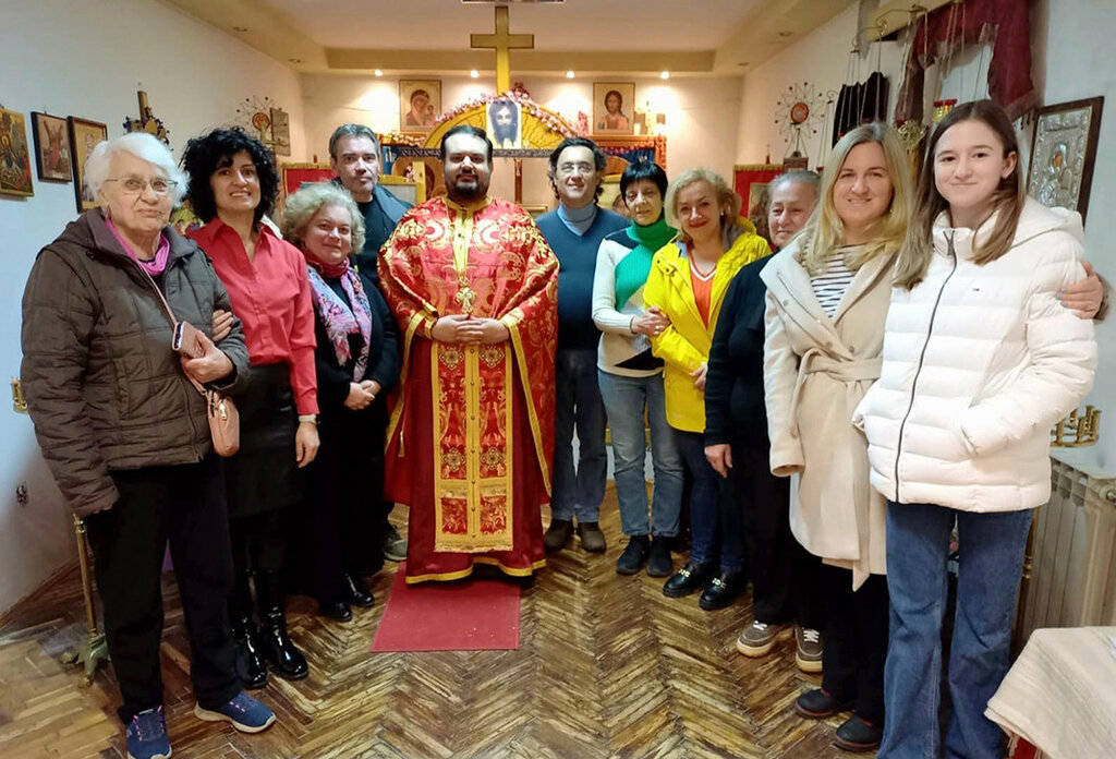 Отец Цоло Кривачков с българи от православната общност в Загреб, Хърватия