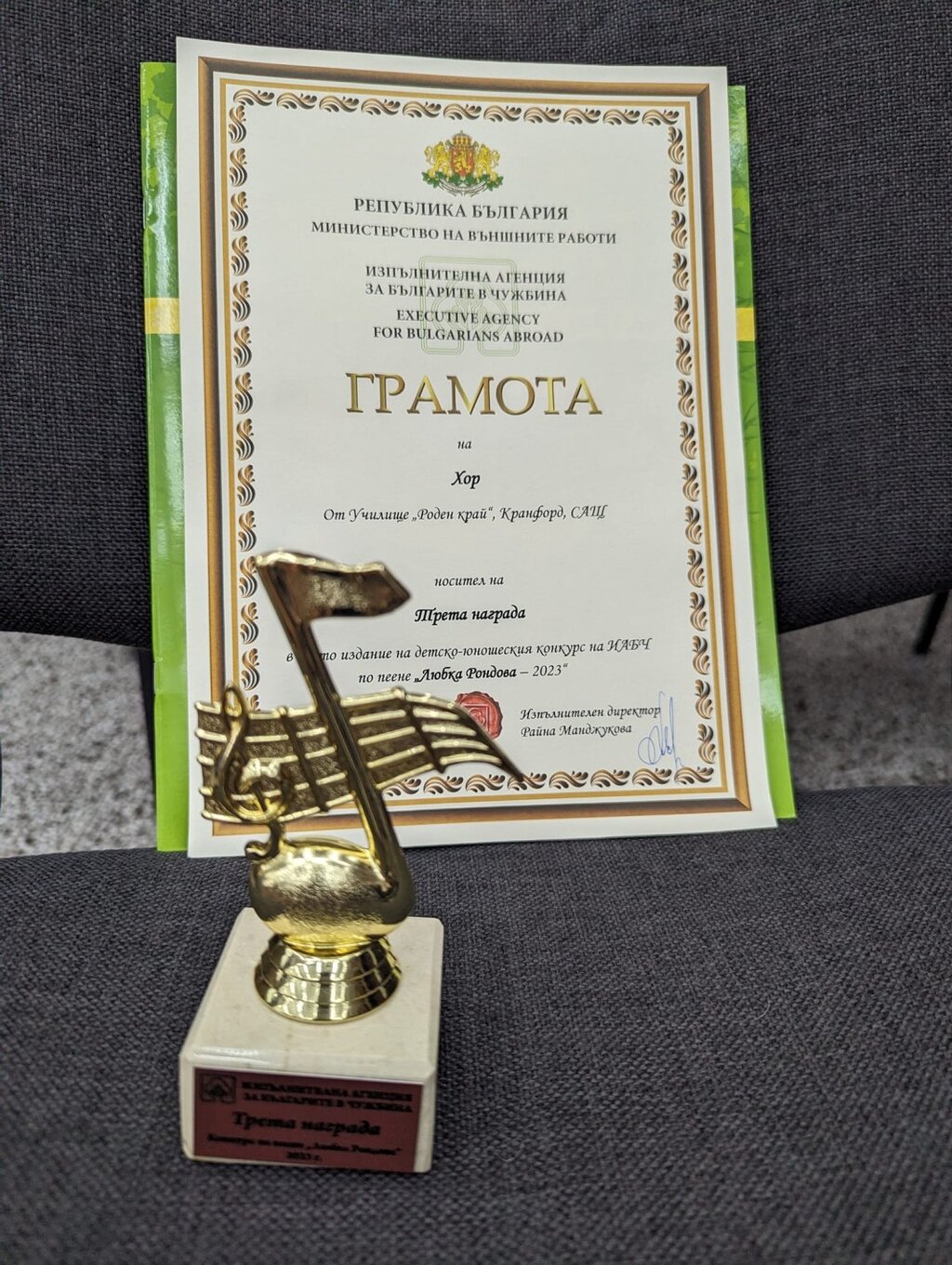 „Нямах представа, че дейността ми ще е много по-различна от това, което си мислех, че ще правя. Предизвикателството се оказа едно доста интересно пътуване за мен – споделя ни Елена Антимова. – Сформирането на училищен хор беше цел номер едно на школото преди две години, защото това е още един начин, по който децата могат да бъдат мотивирани да учат езика. Не с учебника, не с тетрадката, не на дъската и под диктовка, а чрез друга, по-занимателна форма, която също да им помогне да развият езиковите си способности.“