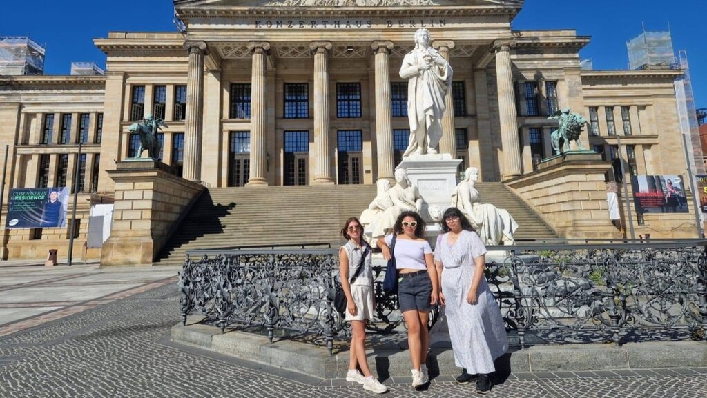 Карина Амбарцумян, Симона Василева и Гергана Бешева разгледаха част от берлинските музеи и галерии, а богатата им програма включваше и посещение на забележителностите в Потсдам. В посолството на страната ни те се срещнаха със заместник-ръководителя на мисията Галина Цветанова-Костова, разгледаха изложбата в БКИ и богатата библиотека и се информираха за дейността на института.