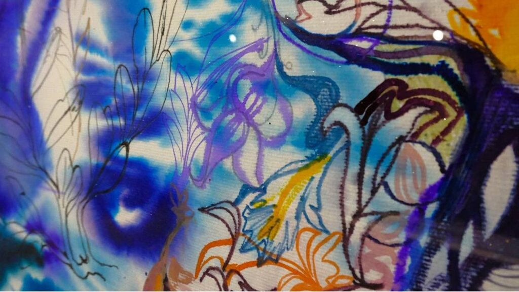 ”Oamenii pot vedea colaje cu elemente naturale, colectate în Islanda, Suedia, Franța, Bulgaria”, spune artista. ”Există, de asemenea, lucrări în relief – cu incizii specifice pe suprafața hârtiei – precum și acuarele și desene cu vopsele naturale obținute din flori, rădăcini, scoarță de copac.