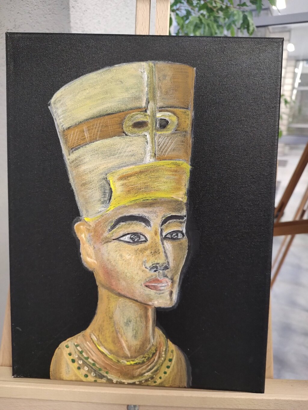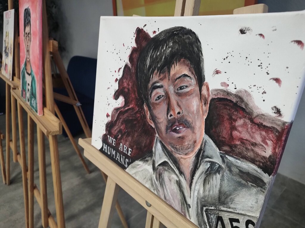 „Desenez de când eram foarte mică, încă de când am început să țin un creion în mână. Interesul pentru artă a venit în mod firesc, ca parte a vieții mele de zi cu zi. Cred că există și o legătură ereditară, deoarece și mama mea are talent și mă încurajează mereu să desenez. Deoarece sunt fan al serialului coreean Squid Game („Jocul calmarilor”), l-am pictat pe personajul principal al filmului pe pânză. Cred că aceasta este prima mea operă adevărată și nu întâmplător se află în centrul lucrărilor din expoziția mea. Desenez în principal pictură, dar mă interesează și grafica. Desenul necesită multă concentrare și timp și, deoarece merg la școală, pot termina un tablou în cel puțin două săptămâni.”